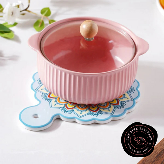 Round Blue Mandala Trivet with Handle