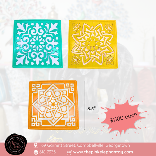 Tealight Pink and Yellow Pom Pom Rangoli 5"