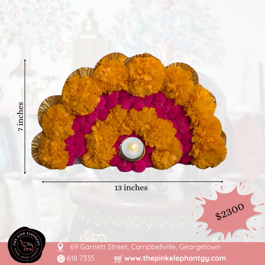 Pink and Yellow Candle Pom Pom Rangoli 14"