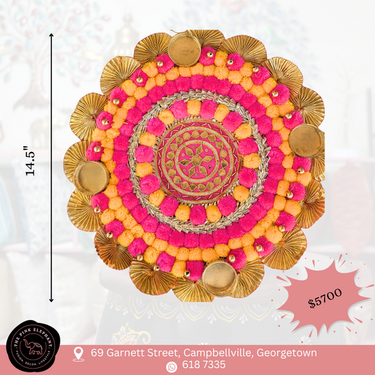 Small Circle Pink and Yellow Pom Pom Rangoli 6"