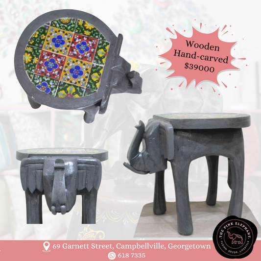 Grey Wooden Elephant Stool