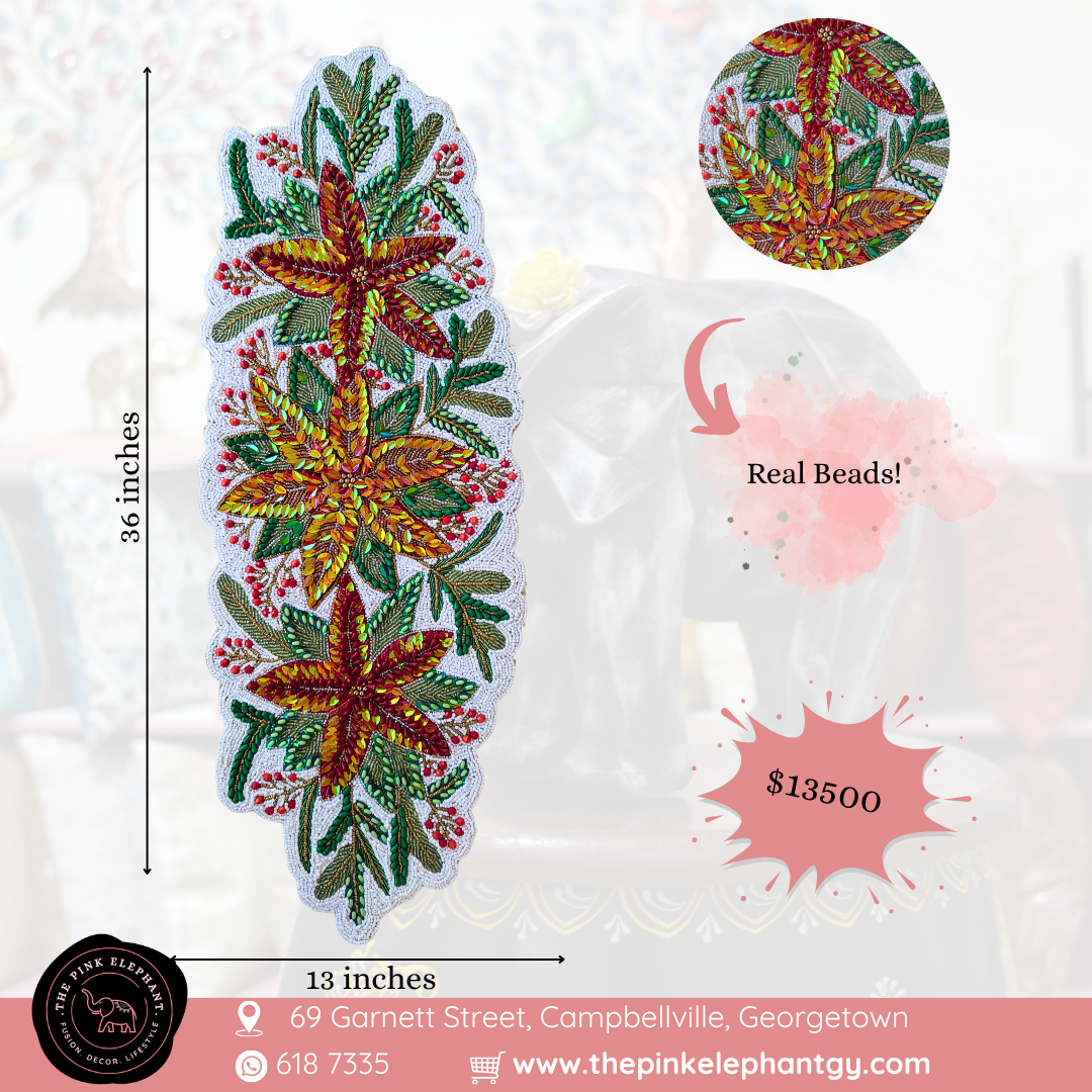 White Beaded Poinsettia Table Runner